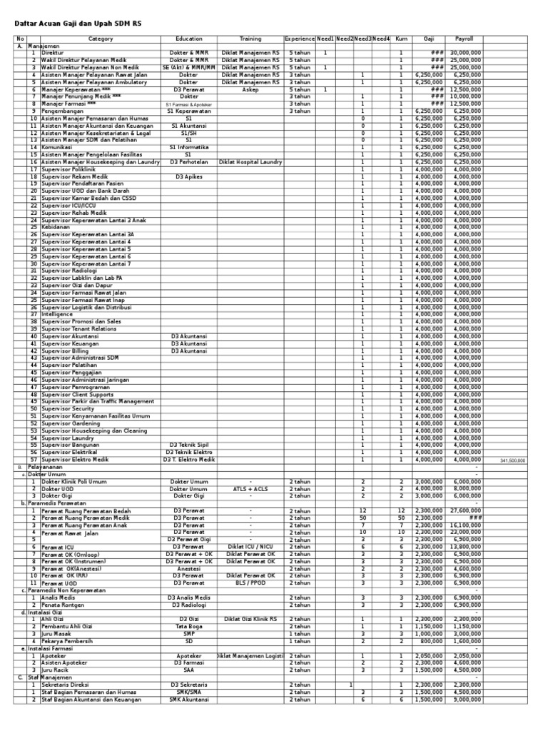 Daftar Acuan Gaji Dan Upah Sdm Rs Pdf